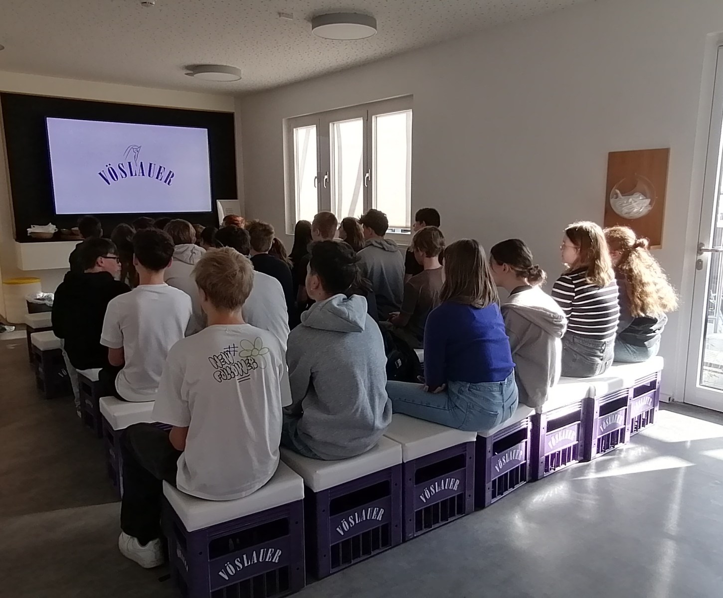 Im Rahmen der Berufsorientierung besuchten die Schüler:innen der 4EL am 17.04. gemeinsam mit ihrer Klassenvorständin Prof. Haider die Vöslauer GmbH in Bad Vöslau.