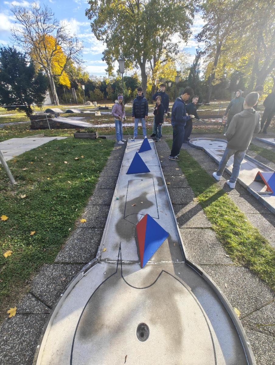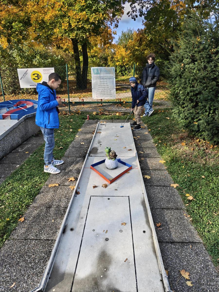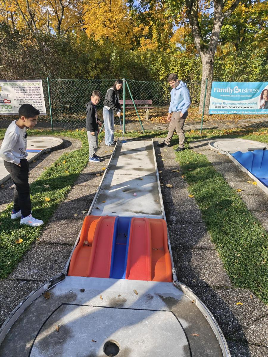 Am letzten Vormittag vor den Herbstferien war die 1h zu Gast bei ihrer Buddy-Klasse, der 6am. Bei einem spielerischen Kennenlern-Bingo konnten die Schüler:innen miteinander ins Gespräch kommen und erste Kontakte knüpfen. Ein besonderes Highlight war danach der gemeinsame Ausflug zum Minigolfplatz, bei dem Teamgeist und Spaß im Vordergrund standen. Der Parcours war nämlich in gemischten, klassenübergreifenden Teams zu absolvieren, wobei die Kinder der ersten Klasse ebenso viel Ballgefühl zeigten wie die „Großen“ aus der Oberstufe. Die Begegnung stärkte das Gemeinschaftsgefühl und machte Lust auf weitere gemeinsame Aktionen im Schuljahr.