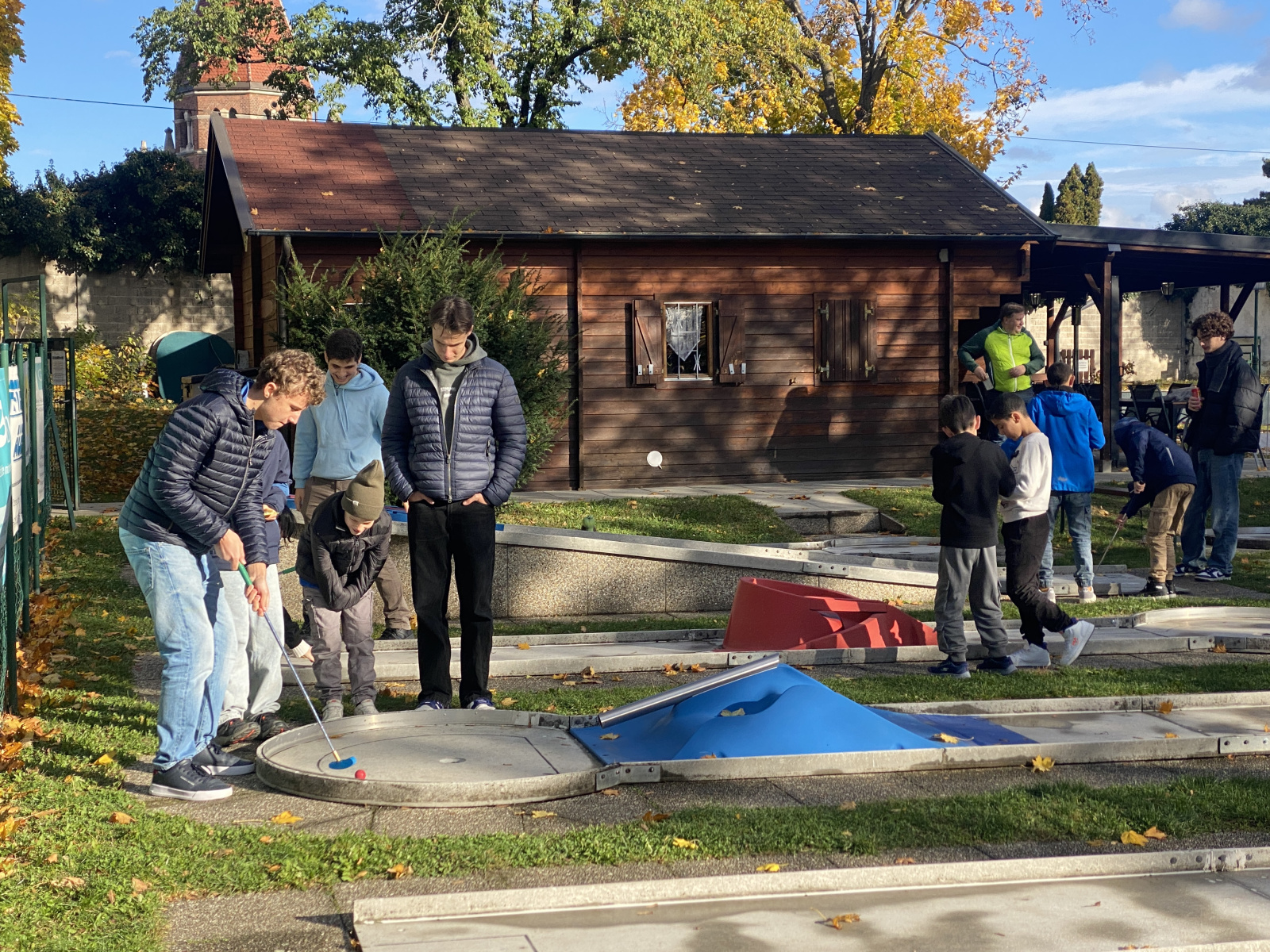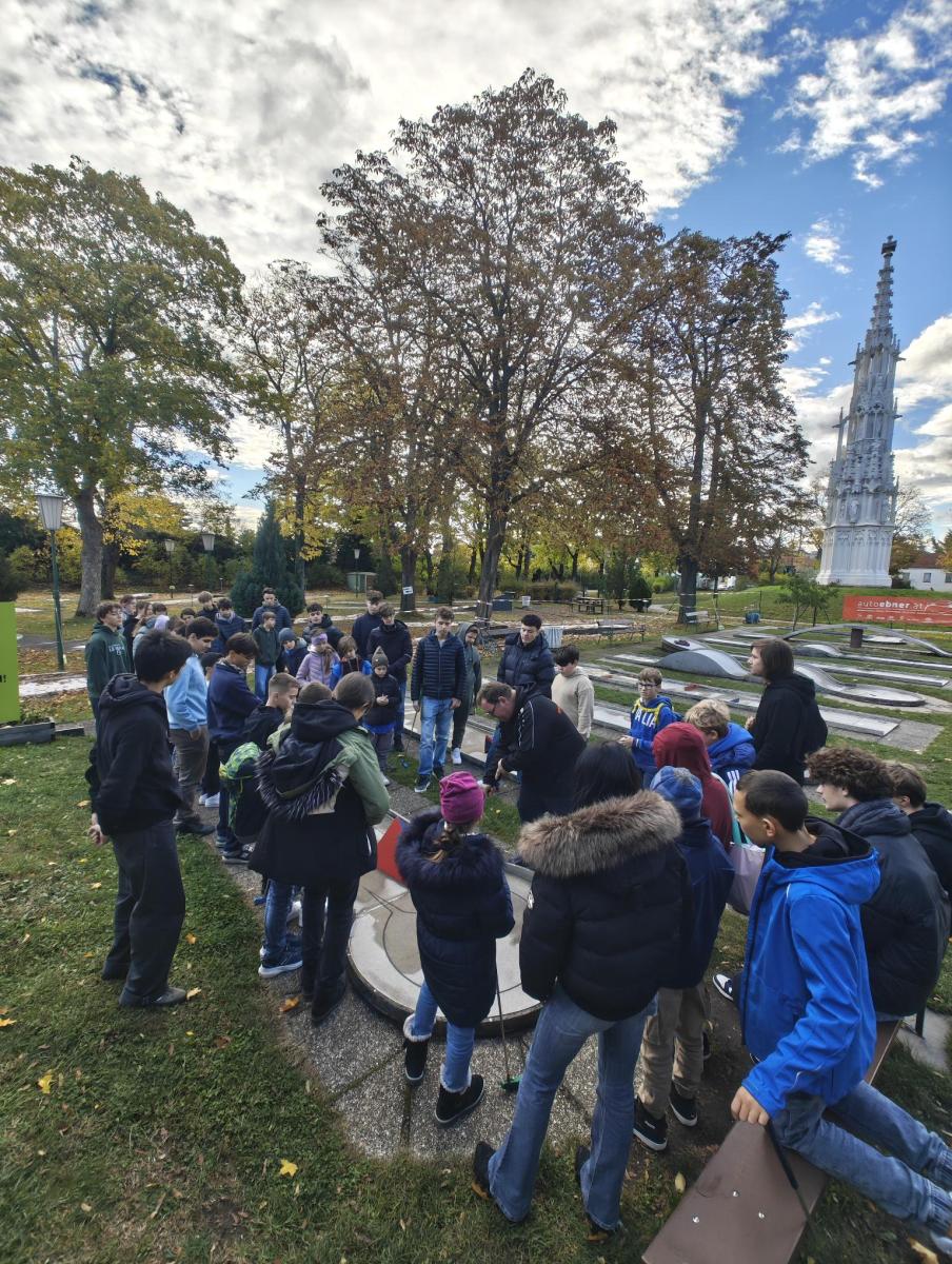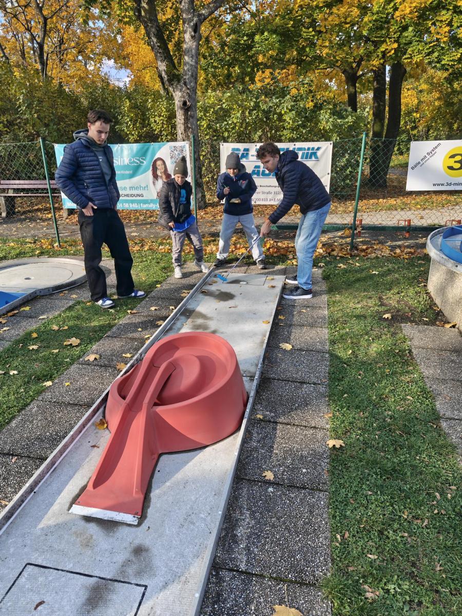 Am letzten Vormittag vor den Herbstferien war die 1h zu Gast bei ihrer Buddy-Klasse, der 6am. Bei einem spielerischen Kennenlern-Bingo konnten die Schüler:innen miteinander ins Gespräch kommen und erste Kontakte knüpfen. Ein besonderes Highlight war danach der gemeinsame Ausflug zum Minigolfplatz, bei dem Teamgeist und Spaß im Vordergrund standen. Der Parcours war nämlich in gemischten, klassenübergreifenden Teams zu absolvieren, wobei die Kinder der ersten Klasse ebenso viel Ballgefühl zeigten wie die „Großen“ aus der Oberstufe. Die Begegnung stärkte das Gemeinschaftsgefühl und machte Lust auf weitere gemeinsame Aktionen im Schuljahr.