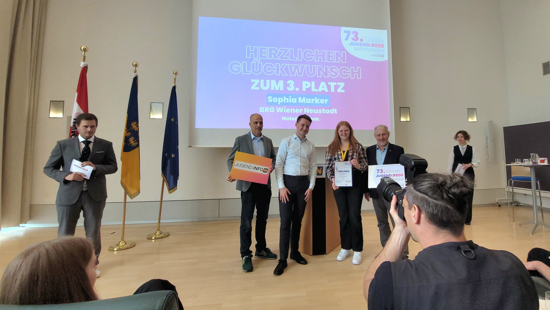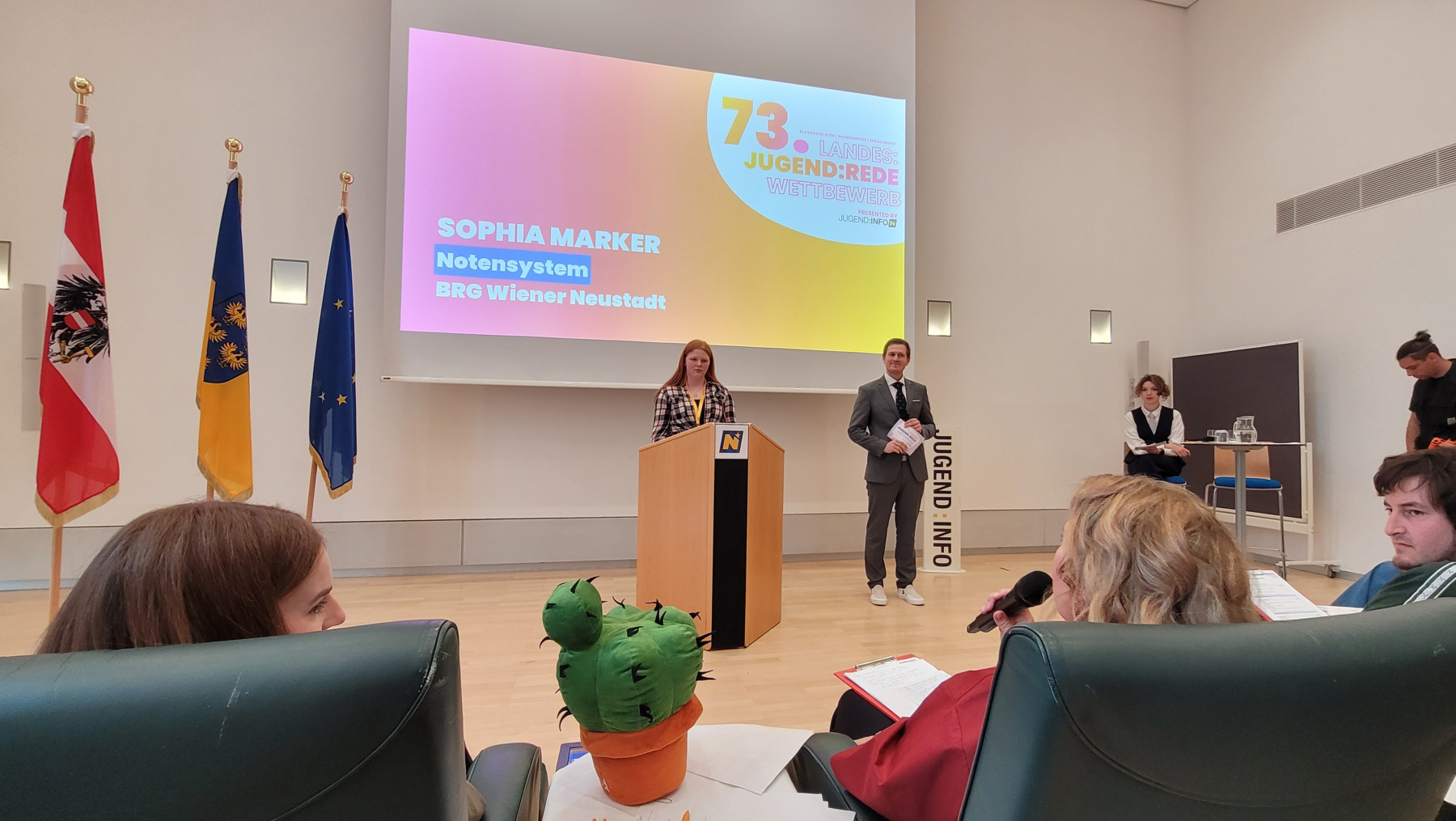 Am 14. April 2026 fand in St. Pölten das Landesfinale des diesjährigen Redewettbewerbs statt. Aufgrund von Umbauarbeiten im großen Landtagssaal wurde die Veranstaltung im Ostarrichisaal des Landhauses St. Pölten abgehalten. Zahlreiche talentierte Schüler:innen aus ganz Niederösterreich stellten dabei ihr rhetorisches Können unter Beweis. Insgesamt wurden rund 20 beeindruckende Reden präsentiert – die Konkurrenz war entsprechend stark.