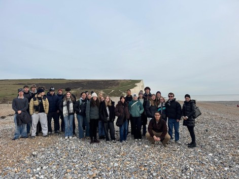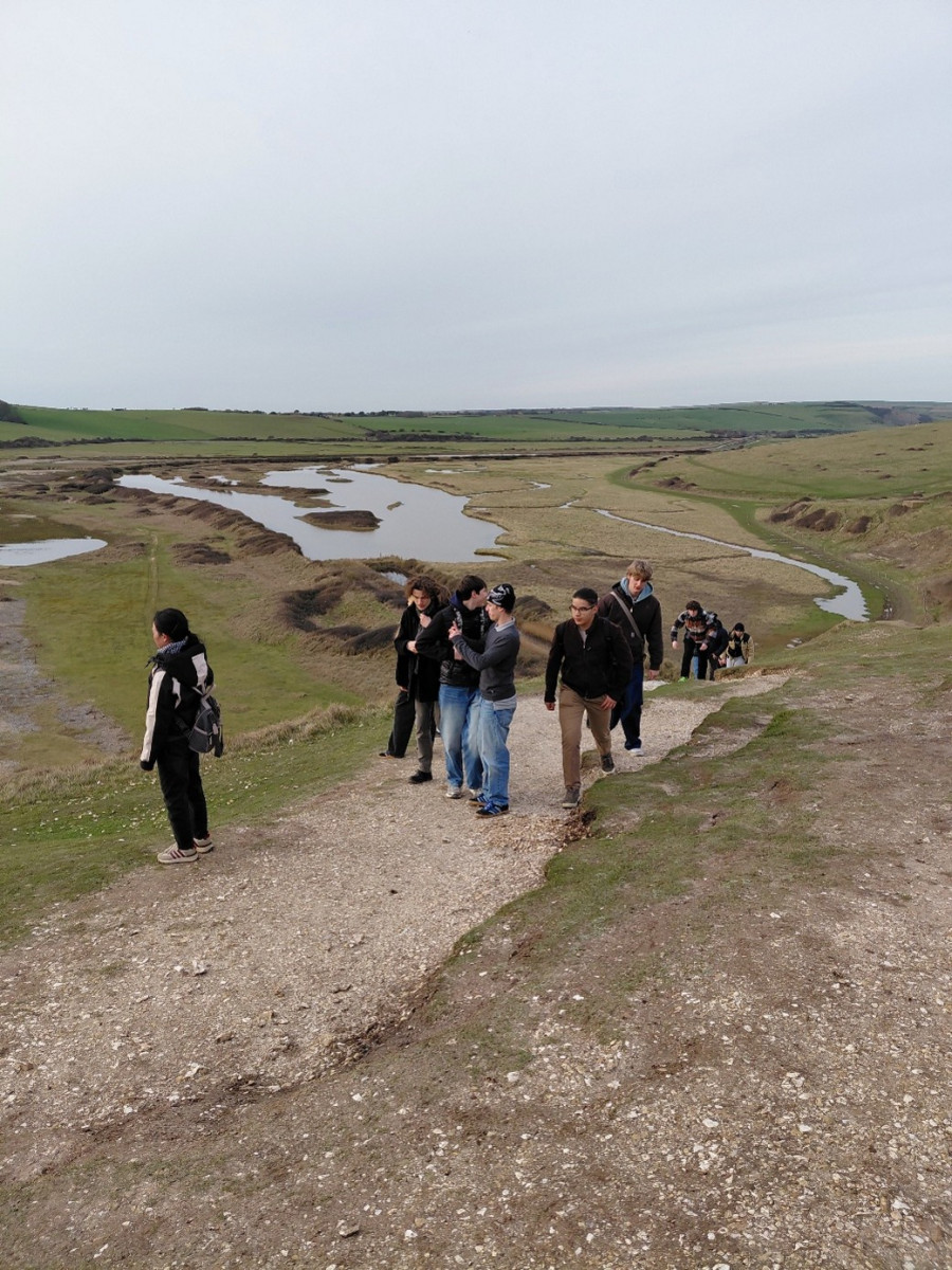 On Tuesday, we had school again, where my class played a quiz. After lunch, we took the bus to the Seven Sisters, a series of chalk sea cliffs. It was very muddy, and we climbed a hill from which we had an incredible view of the sea.