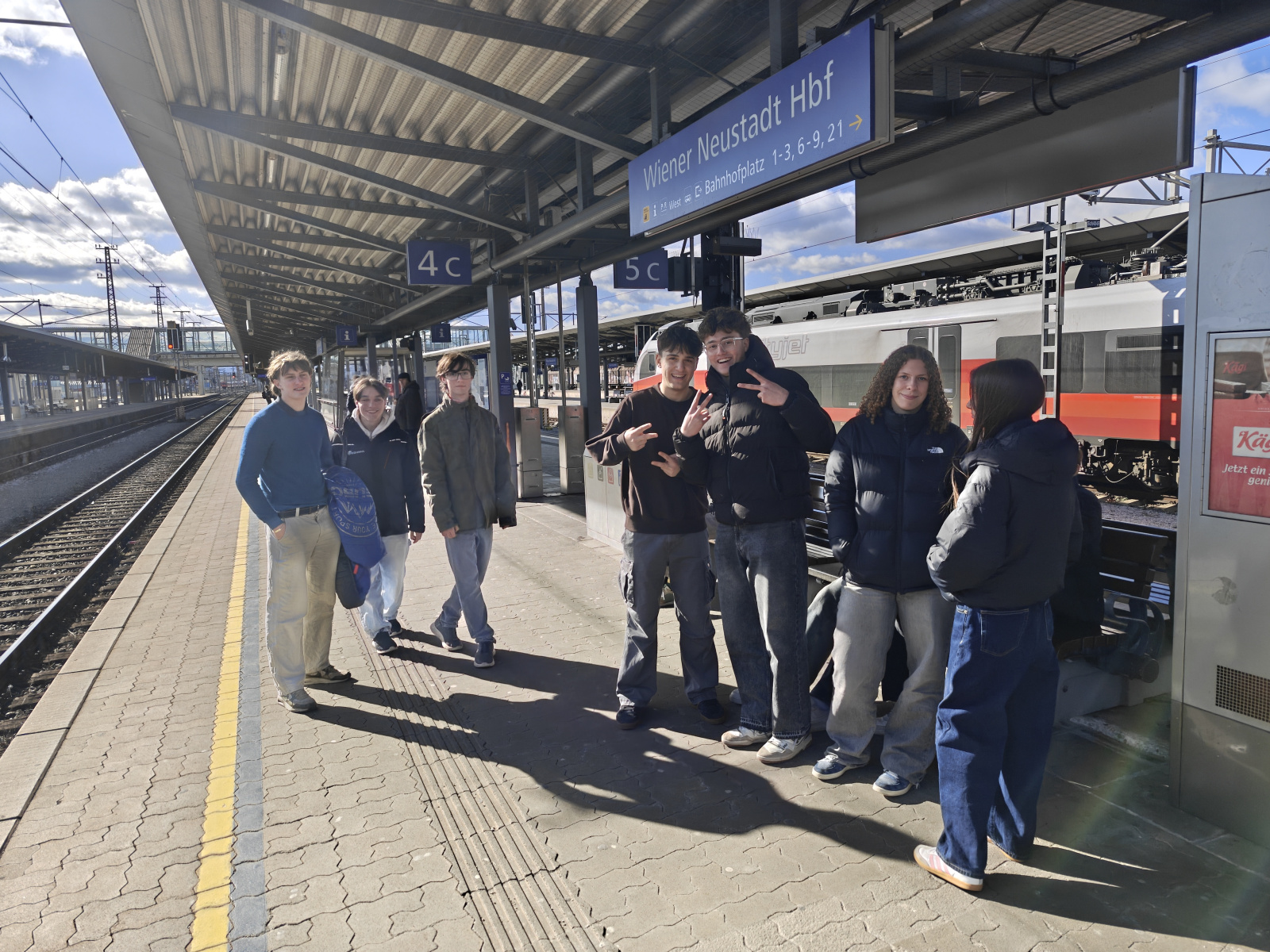 Die Reise der deutschen Gruppe unter der Leitung von Lennart Görg und Christian Götzinger begann bereits am Faschingsdienstag im Nachtzug. Nach ihrer Ankunft in Wiener Neustadt wurden sie von den Schülerinnen und Schülern der 7bl gebührend empfangen: Während ein Teil der Klasse die Gäste direkt am Bahnhof begrüßte, sorgte der andere Teil für eine herzliche Willkommensüberraschung im Saal Humboldt. Dort wurden sie außerdem von Direktor Gerald Stachl, Klassenvorstand Werner Sulzgruber und Organisator des Schüleraustausches Christian Filipp herzlich willkommen geheißen.