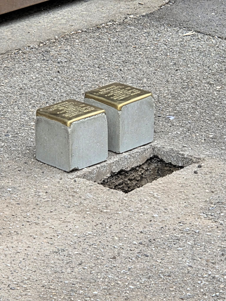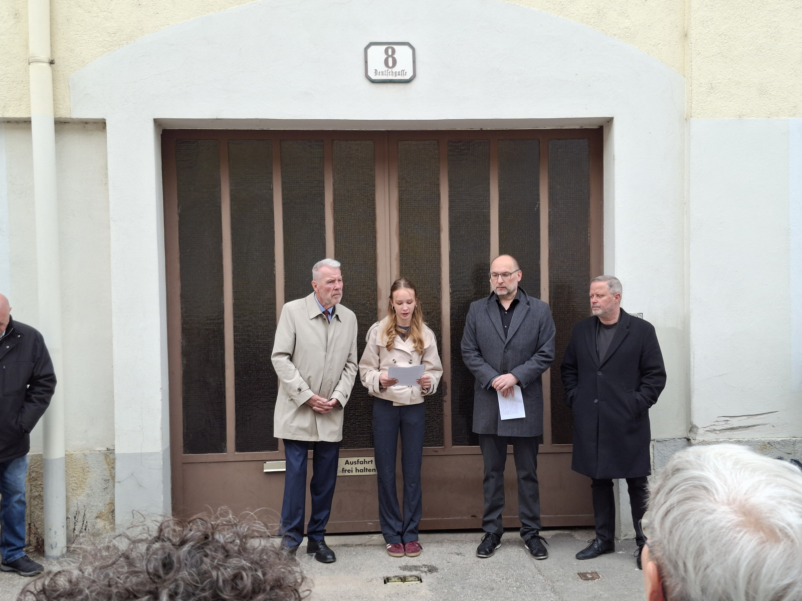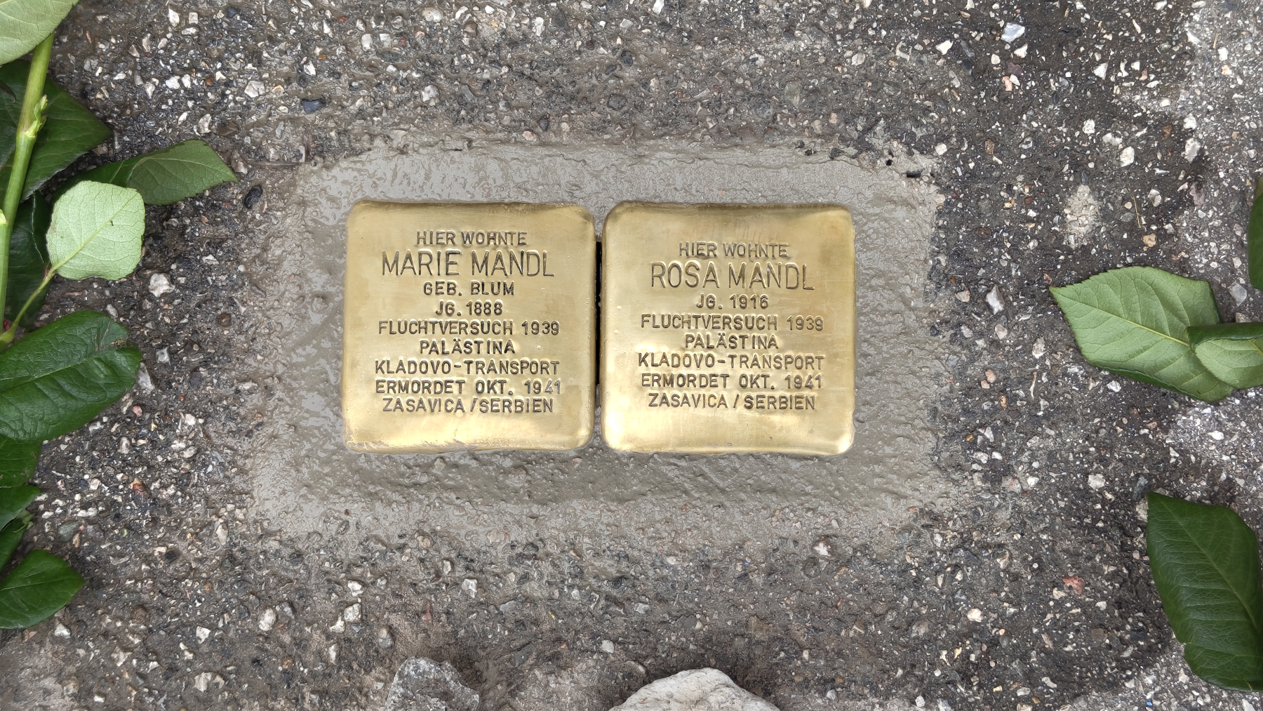 In der Deutschgasse 8 setzte man zwei „Stolpersteine“, nämlich einen für Marie Mandl und einen weiteren für ihre Tochter Rosa. Beide waren auf der Flucht in Jugoslawien inhaftiert, vom Balkanfeldzug 1941 gleichsam überrollt und in Serbien nahe Belgrad ermordet worden. Die beiden Gedenksteine waren von einer Privatperson gestiftet worden.